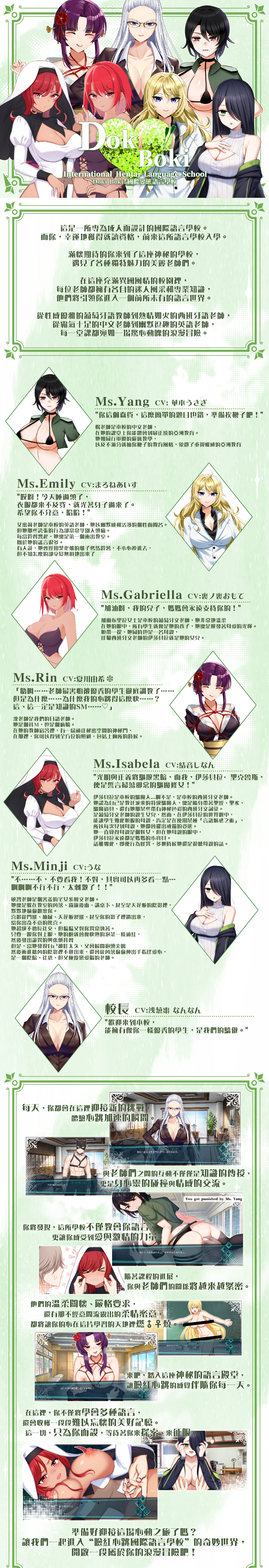 《Doki Boki 國際變態語言教室》|製作社團:WeissGarden純白花園 這是一所專為成人而設計的國際語言學校。 而你,幸運地獲得就讀資格,前來這所語言學校入學。