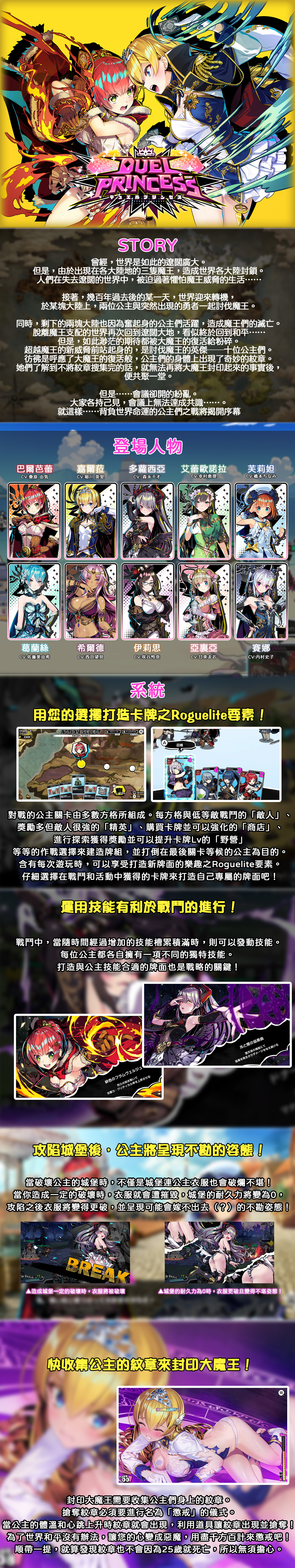 《デュエルプリンセス》|製作社團:qureate 美少女×橫向滾動式塔防遊戲×Roguelite 打造自己專屬的卡牌擊敗公主的城堡吧! 此遊戲是帶領您的卡牌由您的城堡進行,並攻陷公主城堡的橫向滾動式塔防遊戲。 每次遊玩故事時,也能有享受打造新牌面樂趣的Roguelite要素。 並有許多令全世界紳士們高興的賊笑獎勵要素!